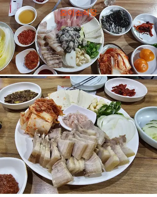 양많고 저렴하고 맛있습니다. 과메기 신선하고 수육도 안 물리고 맛있습니다. 개인적으로는 돼지껍데기를 안 좋아해서 수육이 오겹살인건 싫은데 그거 신경 안 쓸 정도로 맛있습니다.