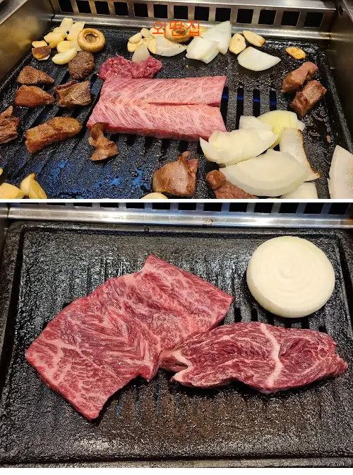 HJ Oh A세트(등심+소갈비살) 주문했는데 고기 질이 좋아서 만족스러웠음 소고기라면과 된장찌개도 함께 주문했고 둘 다 깔끔했음 매장이 넓고 주차장은 넉넉했으나 주말이라 자리는 거의 없었음 드라이브 후 식사 장소로 전반적으로 좋았음